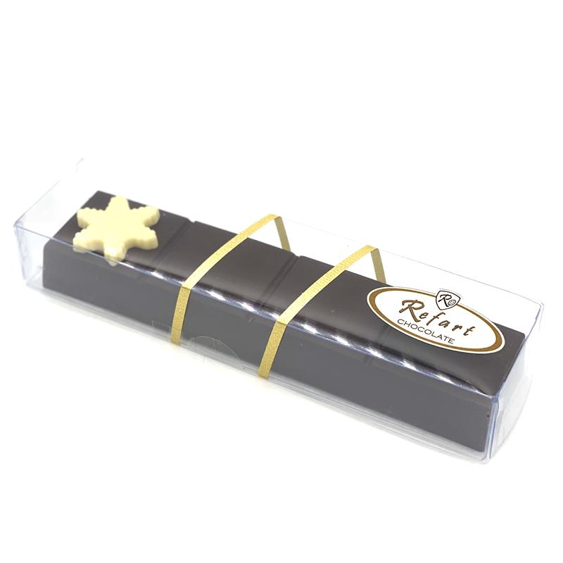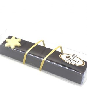 El turrón de chocolate negro 70% relleno de almendra y barquillo de Refart es una exquisita creación para los amantes del chocolate de alta calidad. Elaborado con chocolate negro de origen selecto, su 70% de pureza garantiza un sabor profundo y auténtico.